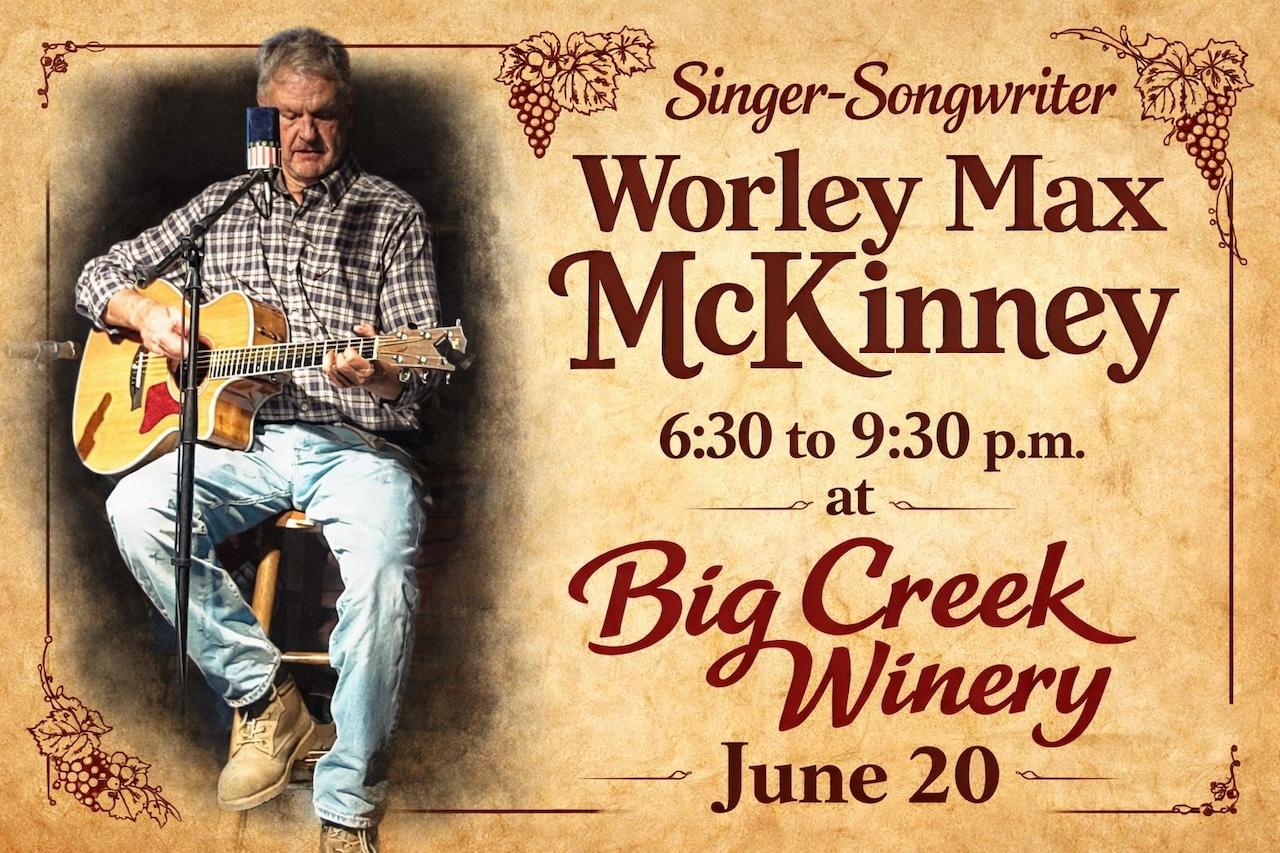Worley Max McKinney to Perform at Big Creek Winery June 20